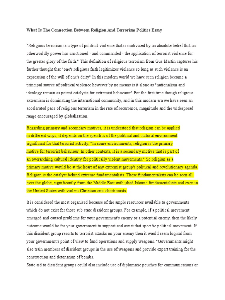 Recently, the term has been associated with Islamic extremists who believe that justice should be sought through terrorism and violence. For Islamic fundamentalists, the main problem in the world is exploitation. The west has religion and politics essay exploited people in other parts of the world, including the Middle East.